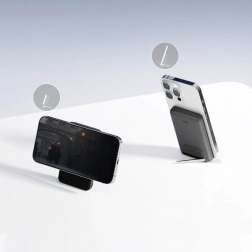 Díky funkci Pass-Through může powerbanka fungovat zároveň jako stolní nabíječka – při připojení k napájení dobíjí sebe i zařízení současně. Kompaktní tělo s skládacím stojánkem umožní pohodlné sledování videí či videohovory bez držení v ruce. LED indikátor čtyřmi diodami přehledně ukazuje stav nabití.
