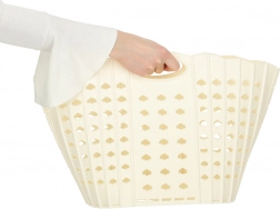 Koš je vybaven dvěma pevnými uchyty pro pohodlné nošení i při plném naplnění. Jeho kompaktní rozměry po složení oceníte v malých bytech i při cestování.