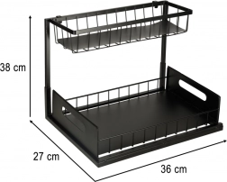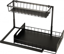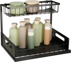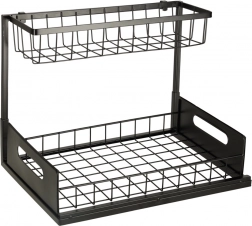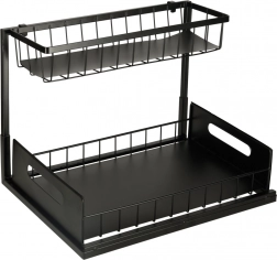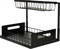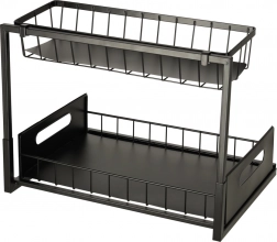 Optimalizujte prostor pod dřezem s dvouúrovňovým kovovým organizérem, který poskytuje chytré a přehledné ukládání čisticích prostředků, lahví a drobných doplňků. Díky vysouvacímu spodnímu koši snadno dosáhnete i na věci uložené vzadu, bez zbytečného přehrabování.