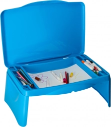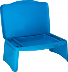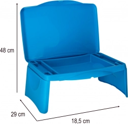 Integrovaná schovka na potřeby udržuje pořádek – pastelky, papíry či malé knížky mají své místo a nic se neválí po autě. Po použití stolek snadno složíte do kompaktních rozměrů, takže se skvěle přenáší i skladuje.
