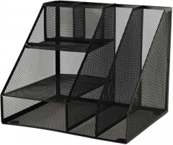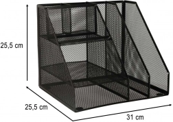 Černá metalová síťka dodává organizéru minimalistický vzhled, což ho dělá vhodným pro jakoukoliv místnost.