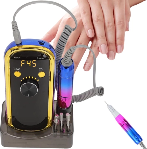 Tato manikúrní frézka kombinuje výkonnost a praktičnost s možností bezdrátového použití. Frézka nabízí variabilní regulaci rychlosti, která vám dovolí snadno vyrovnávat nehty, leštit je a odstranit odumřelou kůži. Rychlý a bezproblémový systém výměny hrotů zajišťuje snadnou manipulaci.