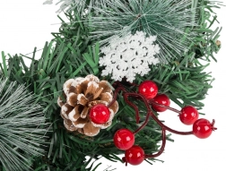 - Realistický vzhled: kombinace zeleného jehličí, šišek, bobulí a vloček.