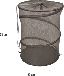 Koš je vyroben z prodyšného síťovaného materiálu, který zabraňuje vlhkosti a nepříjemným zápachům. Díky nízké hmotnosti je snadný na přenášení.
