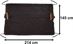 Podložka je vybavena 12 všitými magnety, které ji pevně drží na místě. Hákové úchyty k ráfkům garantují, že se podložka ani při silném větru nesklouzne.