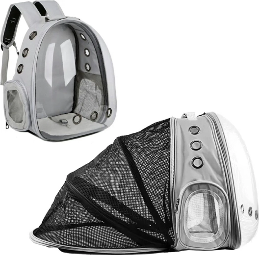 Vysoce kvalitní přepravní taška pro malá domácí zvířata v podobě batohu. Je ideální pro přesun naší kočky nebo crólka na jakoukoli vzdálenost. Možnost rozložení zadní části, což rozhodně zvětší prostor pro našeho mazlíčka. Mimořádně pohodlný design zajistí pohodlí jak pro nás, tak pro zvíře. Pevný materiál, ze kterého bylo nosítko vyrobeno, stejně jako pevná rukojeť a nastavitelné zadní popruhy, zajistí dlouhé a bezproblémové používání výrobku. Taška je vzdušná a bezpečná pro našeho mazlíčka díky ventilačnímu systému. Pohodlné používání zajišťuje také dvojitý zip na obou stranách přepravky a dva způsoby otevírání (zcela nebo otvorem na boku). Další boční kapsa umožňuje přenášet vodu pro vašeho mazlíčka. Průhledná stěna na přední straně udržuje kontakt přenášeného zvířete se světem a minimalizuje stres při jeho přenášení.
