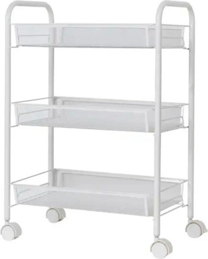 Kompaktní mobilní regál na kolečkách s třemi hlubokými policemi nabízí praktické a stylové řešení pro organizaci kuchyně. Díky odolné konstrukci, pětici odnímatelných háčků a kolečkům s brzdou vše snadno přemístíte a bezpečně zafixujete přesně tam, kde potřebujete.