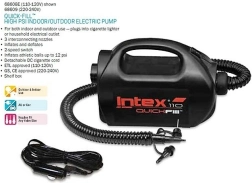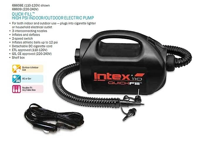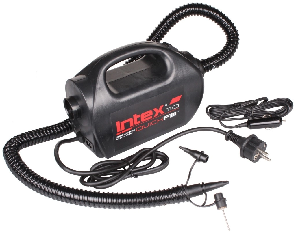 Univerzální elektrická pumpa Intex Quick-Fill zrychlí přípravu matrací, bazénků, člunů i dalších nafukovacích výrobků. Dvojí napájení 12 V/230 V vám umožní použít pumpu jak v domácnosti, tak v autě na dovolené či na kempování. Kompaktní tělo s praktickým madlem a ohebná hadice usnadňují manipulaci.