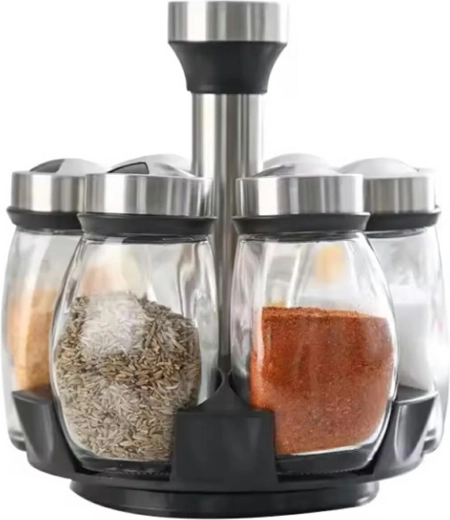 Stylový a funkční pomocník pro každou kuchyň. Otočný stojan šetří místo na pracovní desce a umožňuje rychlý přístup ke všem kořenkám najednou. Průhledné sklo okamžitě ukáže, po které přísadě sáhnout, a víčka s jemnými otvory napomáhají rovnoměrnému sypání bez zbytečného plýtvání.