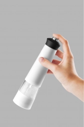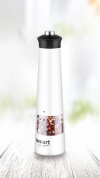 Praktický elektrický mlýnek na koření, pepř a sůl s keramickým mlecím mechanismem a plynulou regulací hrubosti. Průhledná zásobní nádoba usnadňuje kontrolu množství, pohodlné ovládání jednou rukou probíhá stiskem tlačítka. Napájení na 4× AAA baterie (nejsou součástí balení).