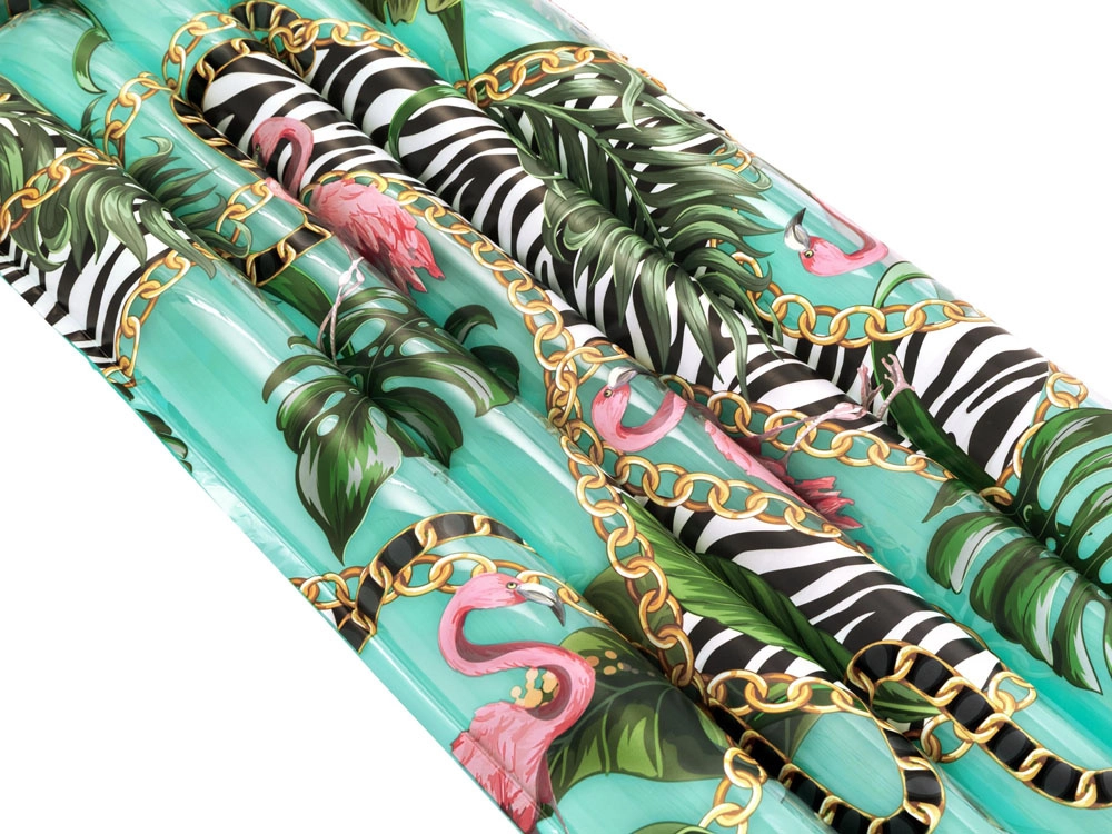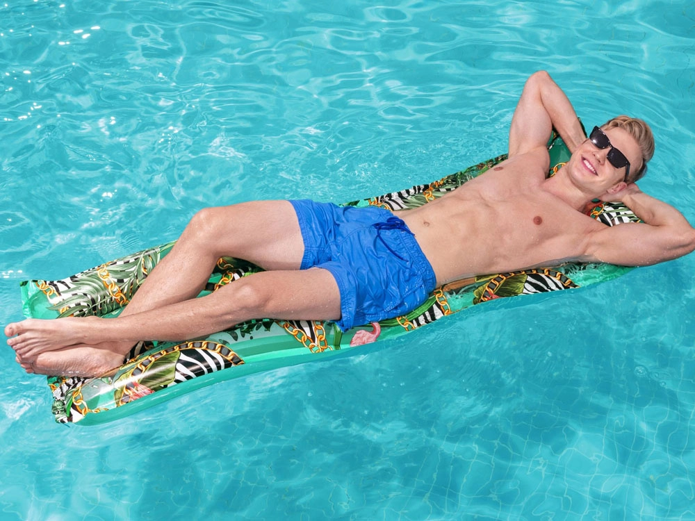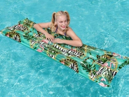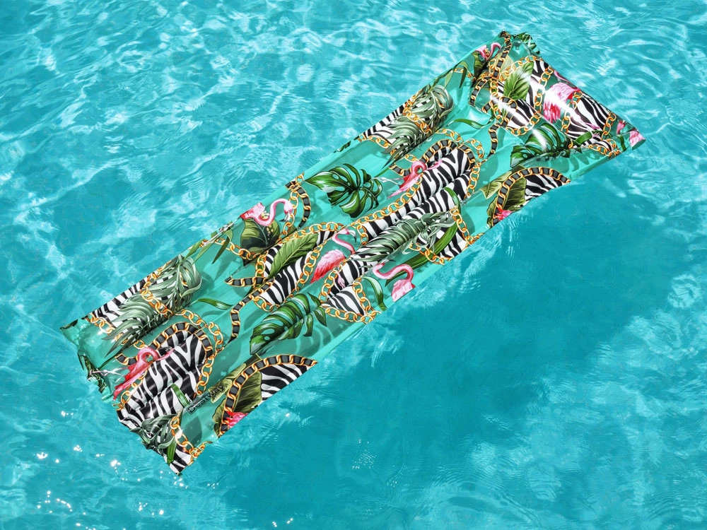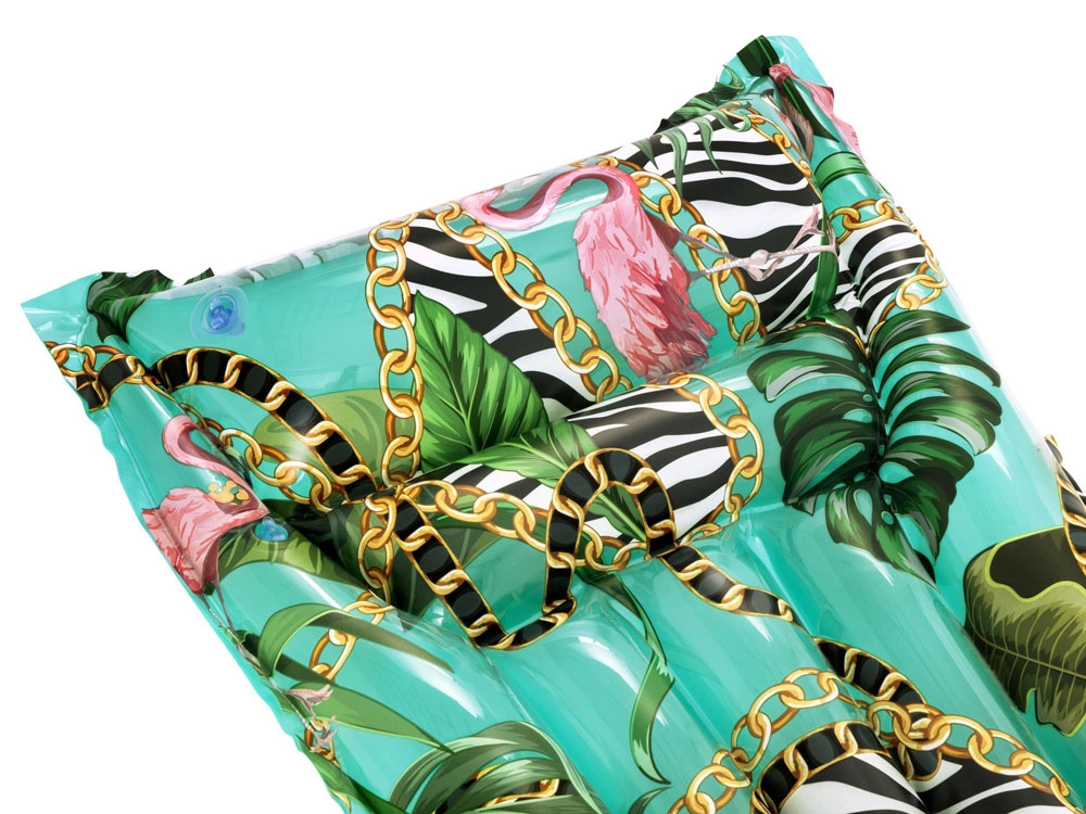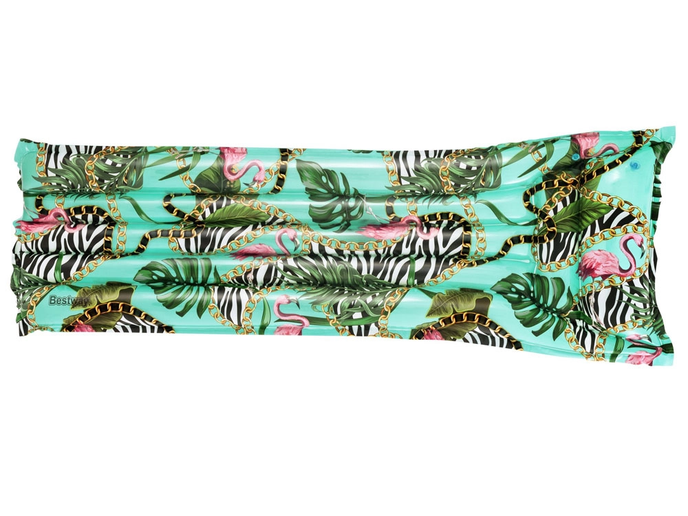 Tato stylová nafukovací matrace s tropickým potiskem je ideální pro relax ve vašem bazénu i na dovolené. Díky pevnému materiálu PVC a promyšlené konstrukci s více vzduchovými komorami nabízí skvělý vztlak, pohodlí a dlouhou životnost.