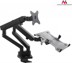 Dvojitý držák na monitor a laptop MC-813 je navržen pro ergonomickou optimalizaci pracovního prostoru. Díky možnosti regulace úhlu náklonu, rotace a změny výšky, tento držák umožňuje přizpůsobení pracovní stanice individuálním potřebám uživatele.