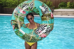 Užijte si léto s pohodlným plovacím kruhem BESTWAY o průměru 114 cm. Odolný PVC materiál, dva pevné úchyty pro bezpečné držení a stylový palmový vzor potěší teenagery od 12 let i dospělé. Ideální na bazén, jezero i moře, snadno se nafukuje a vyfukuje a součástí je i opravná záplata.