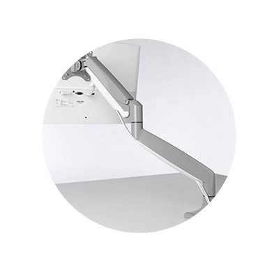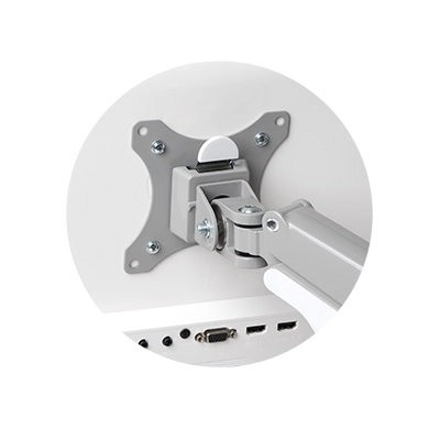 Unese 13–32" monitory do 9 kg, kompatibilní s VESA 75/100. Montáž pomocí C-svorky nebo průchodky, integrovaná správa kabelů.