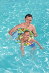 Užijte si léto s lehkým a spolehlivým pomocníkem do vody. Dětský kruh BESTWAY s motivy mořských zvířátek dodá plavání zábavu i jistotu. Díky kvalitnímu PVC a promyšlené konstrukci je ideální k prvnímu seznamování s vodou v bazénu, u moře i na jezeře.