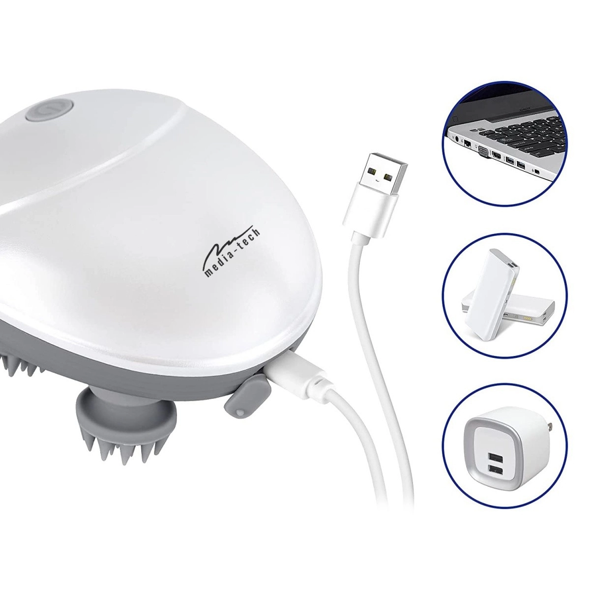 Užijte si každodenní relax s kompaktním masážním přístrojem na hlavu Media-Tech Head Massager. Přístroj napodobuje pohyb prstů a poskytuje jemnou, ale účinnou masáž pro uvolnění napětí. Ideální pro masáž vlasové pokožky, brady, podbradku a šíje, pomáhá při bolestech hlavy a únavě a zlepšuje prokrvení a celkovou relaxaci.