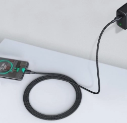 Pevná textilní pletenina chrání kabel před zlomy a opotřebením. Zesílené koncovky zajišťují dlouhou životnost i při každodenním používání.