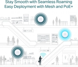 Se smooth roamingem udržíte nepřerušené videohovory a streamy při přechodu mezi AP. Funkce Omada Mesh umožňuje bezdrátově rozšířit pokrytí tam, kde není možné vést kabeláž. Napájení PoE+ (802.3at) nebo DC (adaptér není součástí balení) usnadňuje montáž v ideálním místě.