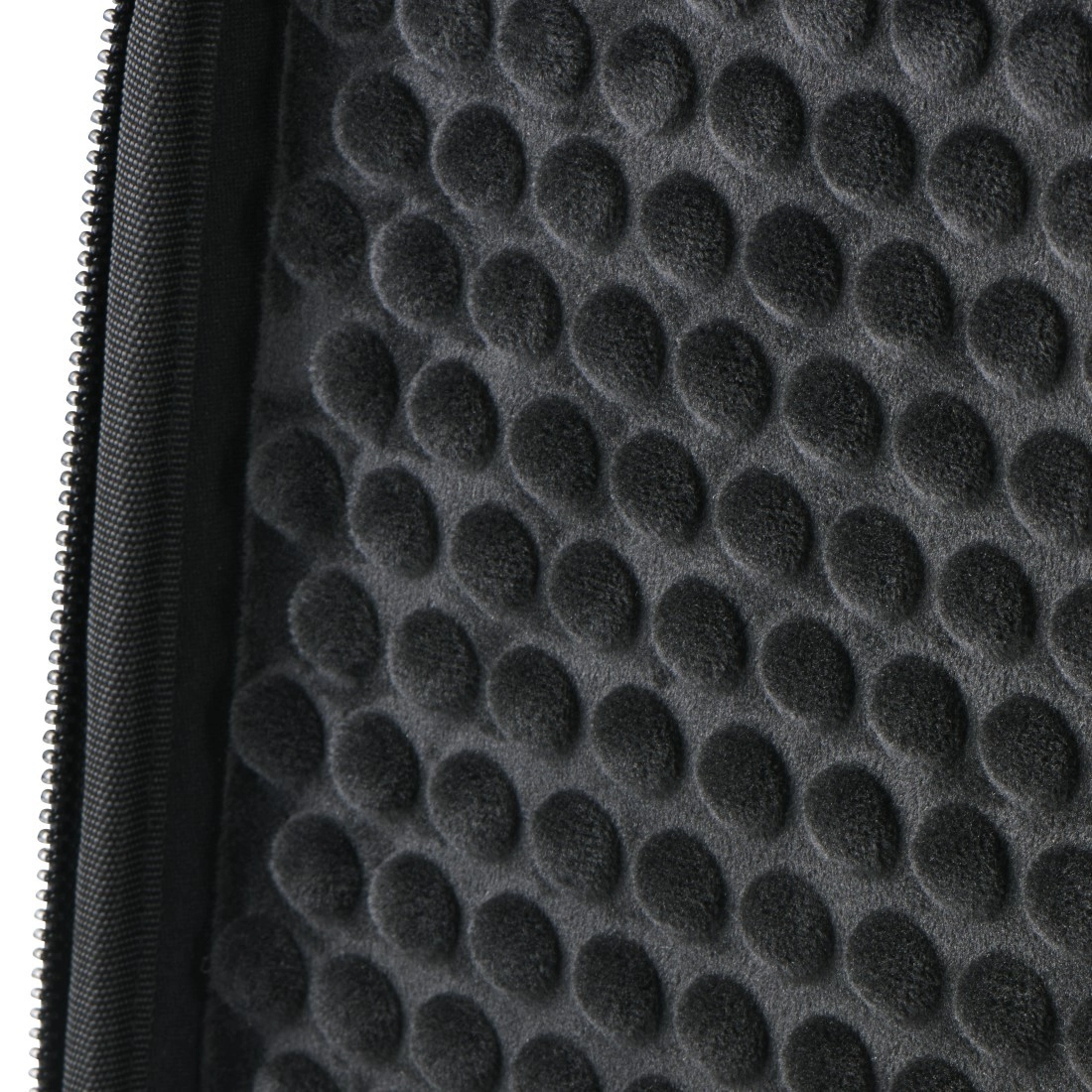 Praktické pouzdro na notebook o úhlopříčce 14.1" nabízí spolehlivou ochranu při cestování, vysokou odolnost proti nárazům díky hustě prošívané výstelce a měkké vnitřní polstrování pro citlivé povrchy. Odolný polyester, bezpečný suchý zip pro upevnění v tašce, prostorná přední kapsa na zip a zesílená madla zajišťují pohodlné a bezpečné každodenní používání.