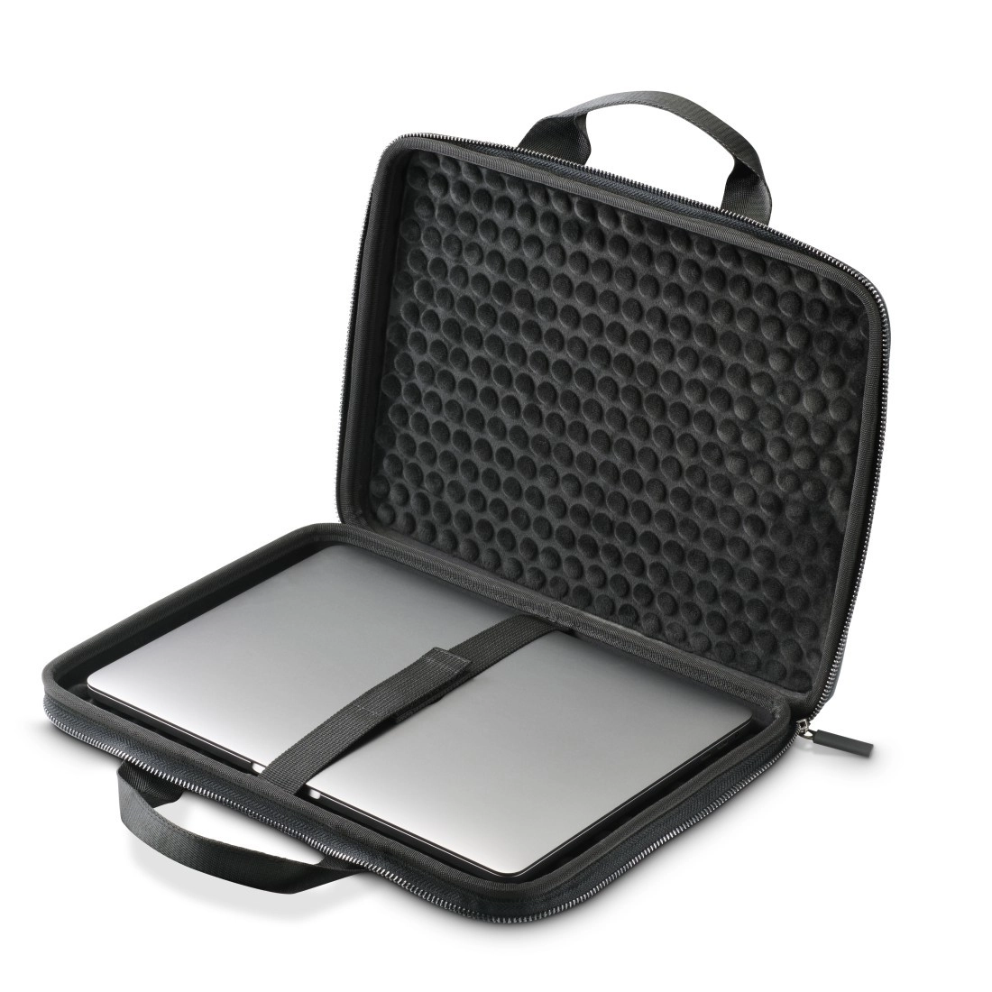 Pro bezpečné uložení v batohu nebo cestovní tašce je uvnitř integrován suchý zip, který notebook pevně zafixuje. Prostorná přední kapsa na zip pojme napáječ, myš, kabely i osobní drobnosti. Zesílené madla usnadňují pohodlné přenášení.