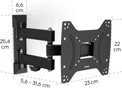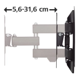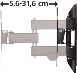 Kompatibilní s VESA standardy od 75x75 do 200x200 mm, zvládá hmotnost televizoru až 20 kg. Maximální a minimální vzdálenost od stěny je 31,6 cm a 5,6 cm, což zajišťuje přizpůsobení podle individuálních preferencí. Černá barva ocelového plechu snadno zapadne do většiny interiérů.
