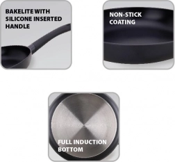Robustní pánev z litého hliníku zajišťuje rychlý ohřev a rovnoměrné rozložení tepla. Dvouvrstvá mramorová nepřilnavá povrchová úprava minimalizuje připalování a umožňuje vařit s menším množstvím tuku, zároveň se velmi snadno čistí. Díky plné indukční vložce je pánev připravena na moderní indukci i klasické vaření.