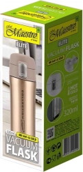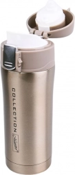 Stylový a praktický termohrnek MAESTRO GOLD o objemu 320 ml udrží vaše nápoje horké až 12 hodin a studené až 24 hodin. Díky vakuové izolaci, dvojitým stěnám a tělu z nerezové oceli 18/10 je odolný, elegantní a ideální na cesty. Uzamykatelné víčko s tlačítkem a pítkem zajišťuje bezpečné a pohodlné pití bez rozlití.