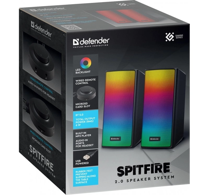 Vychutnejte si čistý stereo zvuk v elegantním provedení. Reproduktory DEFENDER Spitfire 2.0 kombinují stabilní Bluetooth 5.2 s nízkou spotřebou, snadné zapojení přes USB napájení a efektní LED prvky, které oživí každý herní i pracovní set‑up.