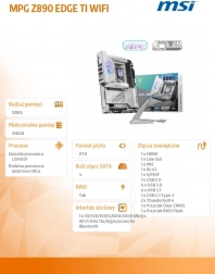 Objevte herní základní desku MSI MPG Z890 EDGE TI WIFI, která exceluje v kombinaci elegance a vysokého výkonu. Tato bílá deska byla vytvořena pro nadšence do designu a výkonu, kteří hledají to nejlepší pro své Intel Core Ultra procesory.
