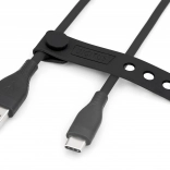 Tento kabel přináší výjimečnou odolnost díky měkkému a kvalitnímu silikonovému materiálu, který je až 25krát odolnější než standardní kabely. Jeho konstrukce zamezuje zauzlování a lámání kabelu, což zajišťuje bezproblémové používání. S ohybovou životností do 25 000 ohybů zůstává kabel spolehlivý a odolný i při intenzivním používání. Součástí je také kabelová páska pro uspořádané a čisté skladování.