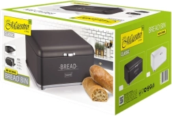 Chlebník Maestro je vyroben z kvalitní nerezové oceli, což zajišťuje dlouhou životnost a odolnost. Jeho elegantní černý design s chromovanými detaily dodává kuchyni moderní vzhled a ergonomický design umožňuje snadné používání. Chlebník je navržen tak, aby chránil pečivo před vysycháním a vzniku plísní, čímž prodlužuje jeho trvanlivost.
