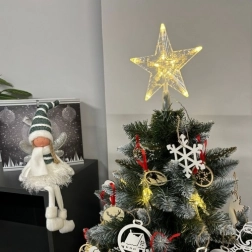 Deset teplých bílých LED diod vytváří příjemný, soudržný světelný efekt, který krásně vynikne na špičce stromku.