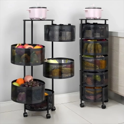 Užijte si více místa a méně chaosu s vertikálním regálem, který kombinuje funkčnost a elegantní vzhled. Otočné a výsuvné koše poskytují skvělý přístup k uloženým věcem, vysoké bočnice brání vypadávání a perforované stěny zajišťují cirkulaci vzduchu – ideální pro ovoce a zeleninu.