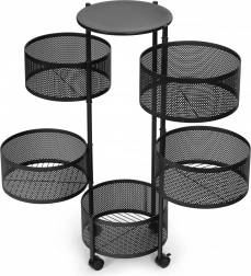 Díky čtyřem kolečkům regál snadno přesunete, dvě z nich mají aretační brzdu pro bezpečné zajištění na místě. Matně černé provedení se hodí do moderních interiérů a otevřená konstrukce se snadno čistí. Využijete jej doma, v kanceláři i v kosmetickém či servisním provozu.