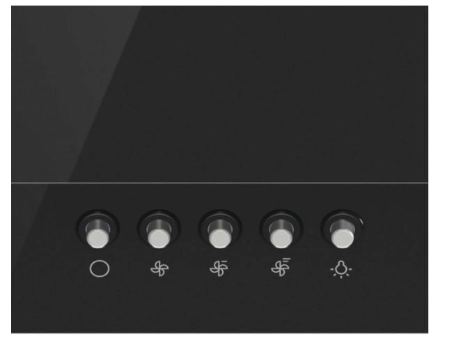Pět přehledných tlačítek umožní rychle zapnout osvětlení a zvolit požadovanou intenzitu odsávání podle aktuálních potřeb.