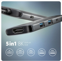Hub je vyroben z odolného hliníkového šasi pro lepší chlazení. Funkce Plug And Play a Hot Plug umožňují snadné připojení a odpojení zařízení bez složité instalace. Připojení k telefonu přes USB-C je také možné, což umožňuje propojení s klávesnicí, myší nebo monitorem.