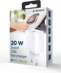 Rychlá 20W USB nabíječka s dvojitým portem pro efektivní a rychlé nabíjení vašich zařízení. Podpora USB PD a QC 3.0 pro maximální výkon.