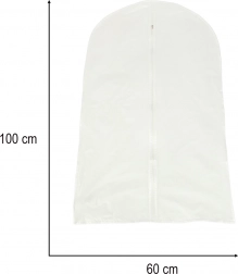 Praktický ochranný obal na oblečení o rozměrech 60 × 100 cm udrží vaše oděvy v perfektním stavu. Díky průhlednému materiálu snadno poznáte obsah bez otevírání, zip zajišťuje pohodlné vkládání a vyjímání a obal poskytuje spolehlivou ochranu před prachem a nečistotami doma i na cestách.