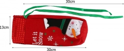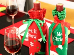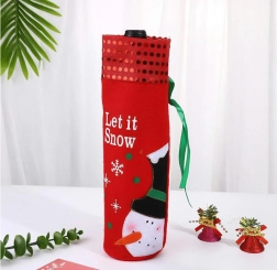 Obal je vyroben z měkkého materiálu, který obepíná láhev a dodává jí elegantní a zároveň veselý vzhled, zároveň ji chrání před chladem - obrazně i doslova! V horní části je zdoben červeným pruhem s třpytivými prvky, který dodává na jiskře a svátečním kouzlu. Zelené stuhy umožňují snadné uzavření obalu, který láhev dobře chrání a zároveň vypadá krásně. Malá červená mašlička na výstřihu je navíc decentním prvkem, který upoutá pozornost a ozvláštní celkový vzhled.
