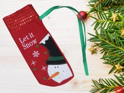 Vánoční obal na láhev s designem sněhuláka