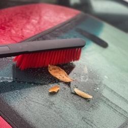 - Měkké a flexibilní vlákna kartáče – bezpečné pro lak vozu, efektivně odstraňuje sníh bez poškrábání povrchů.