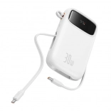 Promyšlená konektorová výbava zahrnuje 2× USB‑C, 1× USB‑A a integrovaný USB‑C kabel, díky čemuž snadno nabijete více zařízení zároveň a často i bez dalších kabelů. Lehká a kompaktní konstrukce s poutkem se vejde do tašky či batohu a je připravena na každodenní používání.