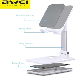 AWEI X11 je praktický stolní držák, který kombinuje elegantní design s vysokou funkčností. Kvalitní materiály (PC, ABS a hliníková slitina) se postarají o odolnost a stabilitu, zatímco silikonové prvky chrání vaše zařízení před poškrábáním a zajišťují pevné uchycení.