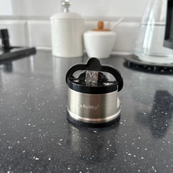 Ostřič nožů Ruhhy je ideální volbou pro domácí koubuhyně, díky svému kompaktnímu designu a snadné manipulaci. Vyrobený z kvalitního kovu a plastu, zajišťuje rychlé a efektivní ostření.