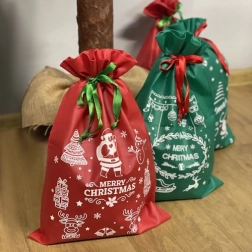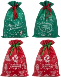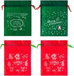 Tento set obsahuje čtyři tašky - dvě červené a dvě zelené, každá s výraznými svátečními potisky, včetně Santa Clause a sněhových vloček. Každá taška je vybavena šňůrkami pro jednoduché a rychlé uzavření, což je velmi užitečné během hektického svátečního období.