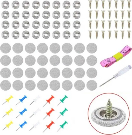 Praktická sada pro rychlou opravu čalounění stropu v autě. Umožní vám okamžitě připevnit povolenou nebo spadlou podsádku pomocí speciálních opravných nýtů a barevných špendlíků. V balení najdete také šroubovák a metrové měřítko pro přesnou a pohodlnou práci.