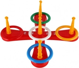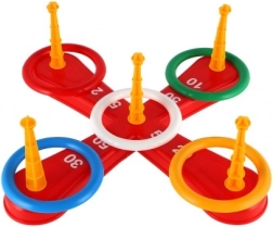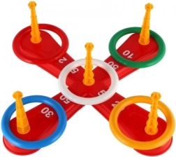 Hra obsahuje křížovou základnu a pestré kruhy pro zábavné házení.