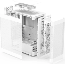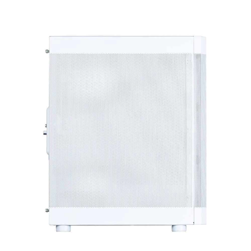 Elegantní bílá ATX Mid Tower skříň s plně síťovanými panely pro maximální airflow a účinné chlazení. Z výroby osazená 6× 120mm ventilátory (3× přední, 2× horní, 1× zadní), s magnetickými prachovými filtry po obvodu a praktickým horním I/O panelem. Podporuje vysoké chladiče CPU, dlouhé grafické karty i svislou montáž GPU a nabízí čistý, moderní design s důrazem na funkčnost.
