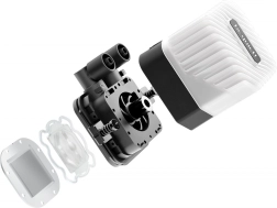 Design v jednotné černé barvě skvěle ladí se sestavami v „all-black“ stylu. Snadno přístupný plnicí port a dodaná láhev s chladicí kapalinou usnadňují údržbu a prodlužují životnost celé soustavy.