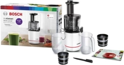 Objevte pomalý odšťavňovač BOSCH MESM500W pro maximální chuť a živiny. Díky technologii GentleSqueezing lisuje při nízkých otáčkách bez zahřívání, má tichý motor 150 W, části bez BPA pro bezpečný kontakt s potravinami, praktické mytí v myčce a čistý provoz s funkcí DripStop. V balení navíc najdete inspirativní knihu receptů.